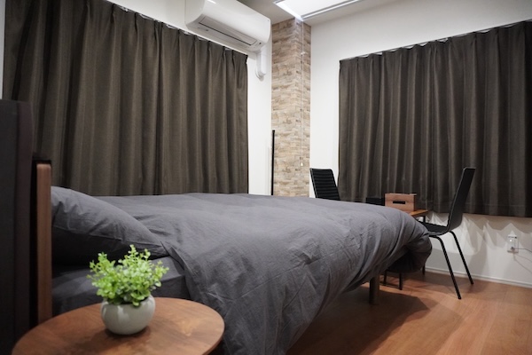 A:はい、寝室は二部屋ございます。間仕切りを外して、広々とした一部屋としてご利用いただくことも可能です。